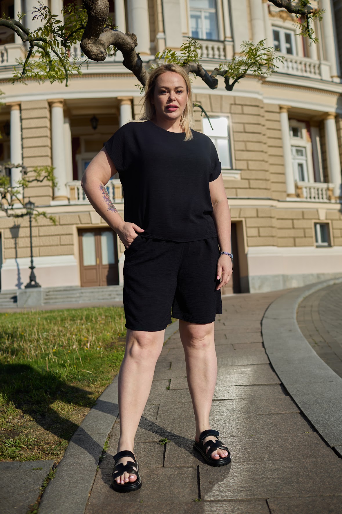 - Опис:Літній костюм те що треба у спеку Тканина що не мнеться та дихає
